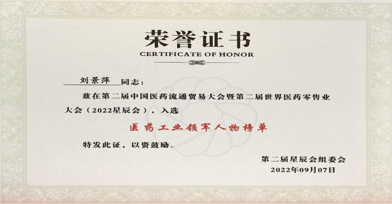 第二屆星辰會盛大開幕 劉景萍董事長入選“醫(yī)藥工業(yè)領軍人物”榜單